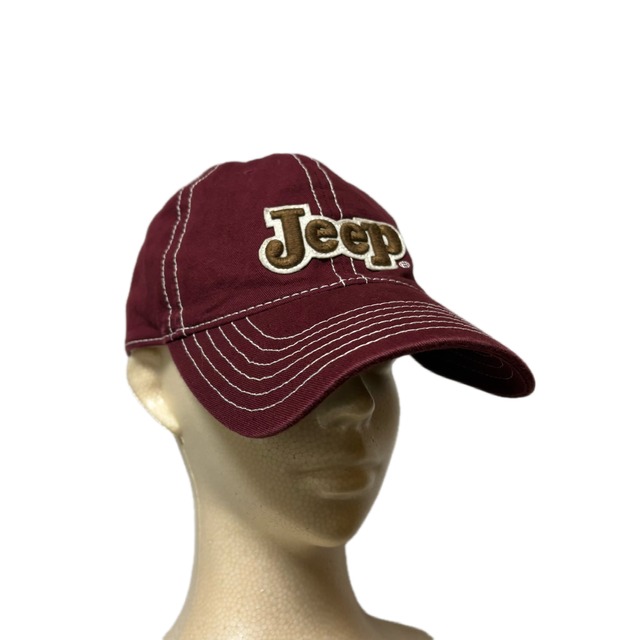 ●size 頭周り : 58cm ツバ : 7cm 高さ : 11cm ●color Burgundy ●fabric cotton ●condition A S:デッドストックや、使用感が極めて少ない状態。 A:若干の使用感はあるが、状態の良いUSED。 B:使用感はあるが、目立つ傷や大きな汚れはない。 C:部分的に目立つ傷や汚れ、使用感がある状態。 ※商品はusedとなっておりますので、多少の傷や汚れがある場合がございますが、ご了承下さい。 企業ロゴキャップ 企業キャップ ジープ